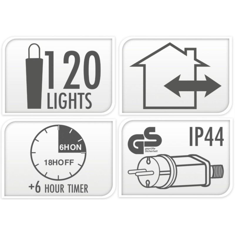 VÁNOČNÍ STROM SVĚTLA SVĚTELNÝ ŘETĚZ 120LED ČASOVAČ VÍCEBAREVNÝ MAKRON