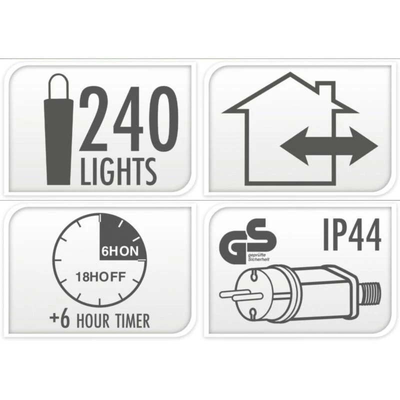 VÁNOČNÍ STROM SVĚTLA SVĚTELNÝ ŘETĚZ 240LED ČASOVAČ VÍCEBAREVNÝ MAKRON