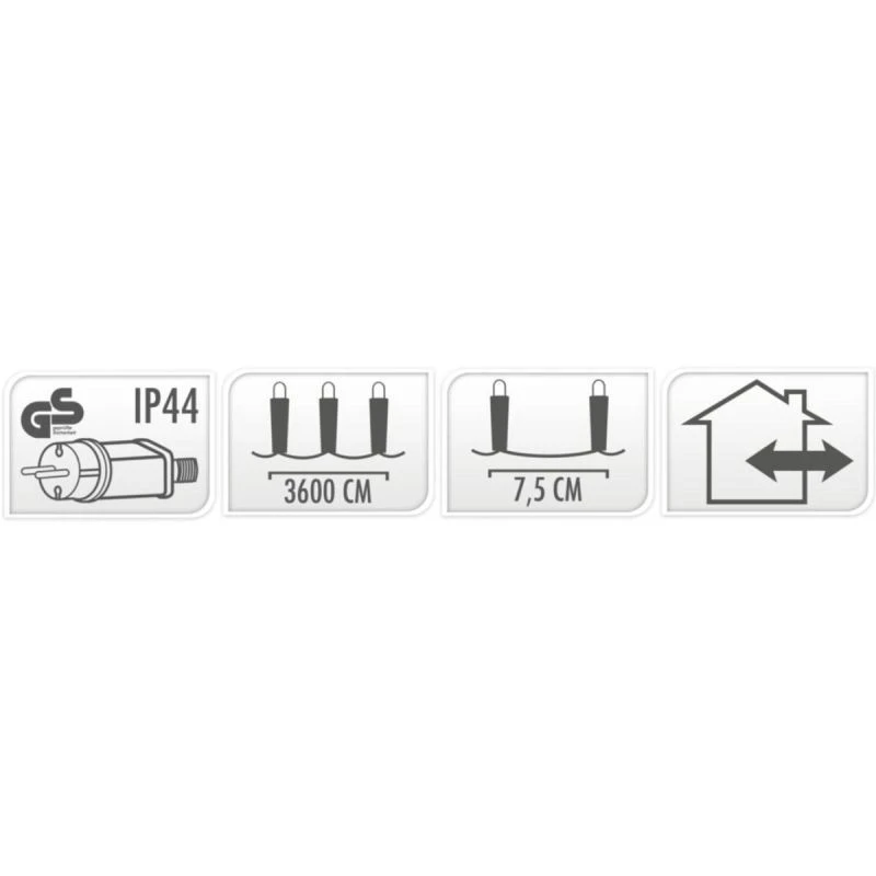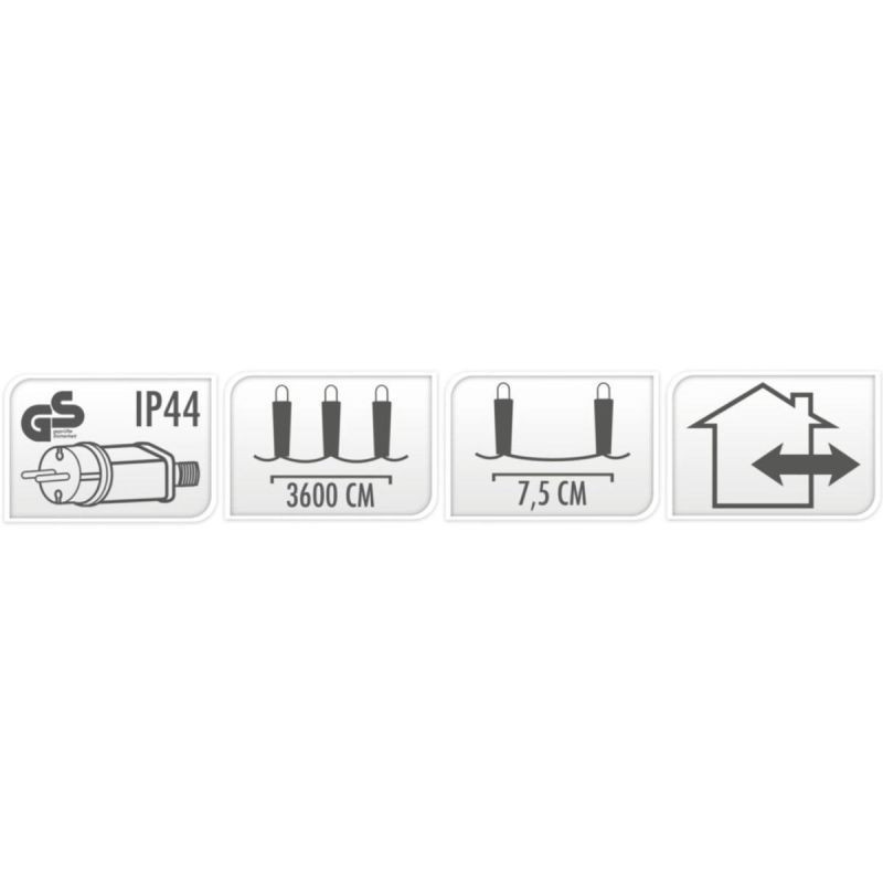 36 metrů osvětlovacího úseku se 480 LED diodami rozmístěnými po 7,5 cm! Jedna sada stačí k osvětlení velkého vánočního stromku, celého balkonového zábradlí, fasády domu nebo plotu a vytvoří jednotný a oslnivý efekt.