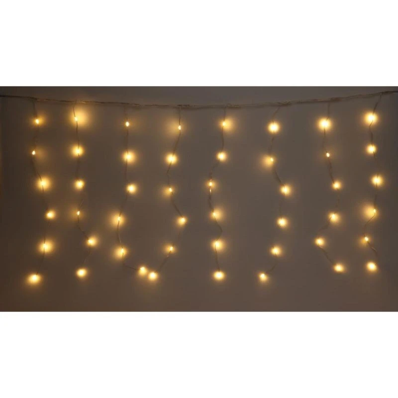 Závěs s průhledným řetězem a LED diodami v mléčném rámu poskytuje měkké, rozptýlené světlo, které vytváří příjemný a jemný vizuální efekt. Díky mléčnému povrchu LED diod je světlo měkčí a méně oslňující, což dodává dekoraci elegantní vzhled. Toto řešení je ideální pro interiéry, kde je potřeba tlumenější osvětlení, i pro venkovní prostory, kde vytváří hřejivou atmosféru. Řetěz s mléčnými LED diodami je ideální pro vánoční dekorace, kterým dodává jedinečný charakter a styl.