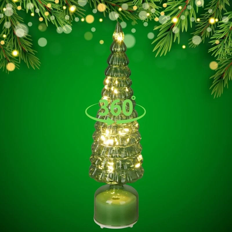 Zelený dekorativní vánoční stromek LED 40 cm je elegantní skleněná vánoční dekorace, která vytváří hřejivou, kouzelnou atmosféru a upoutá pozornost svým mihotavým světlem.
