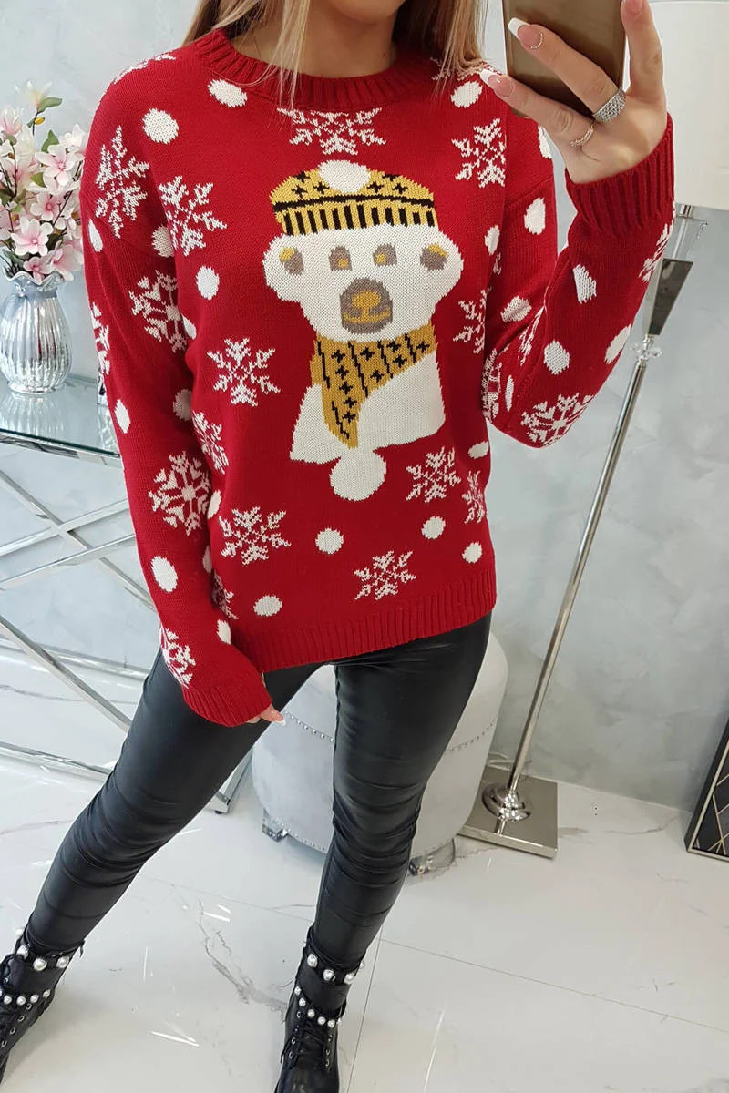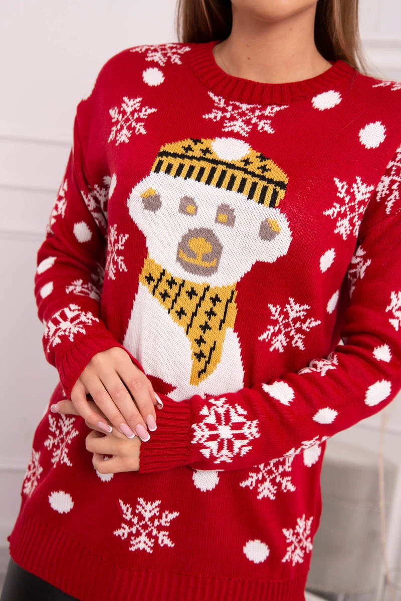 Vánoční svetr s medvídkem červený