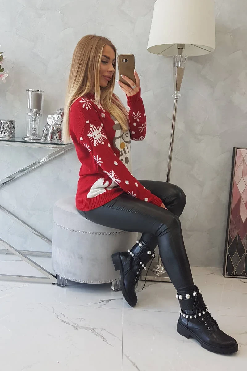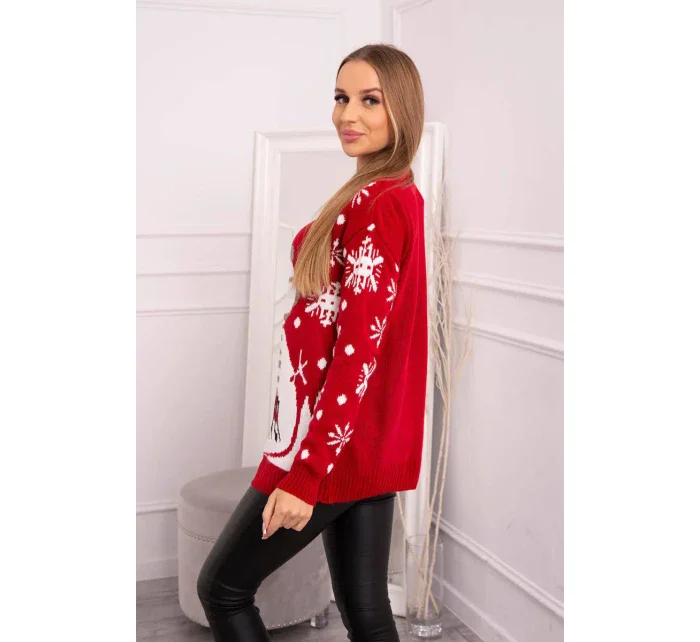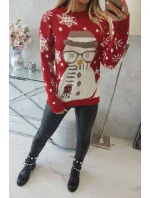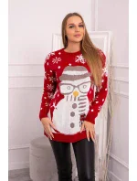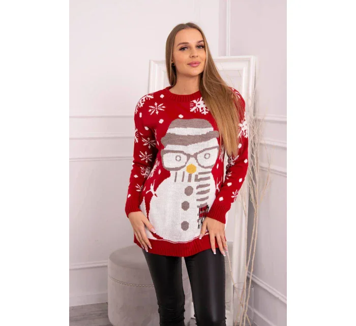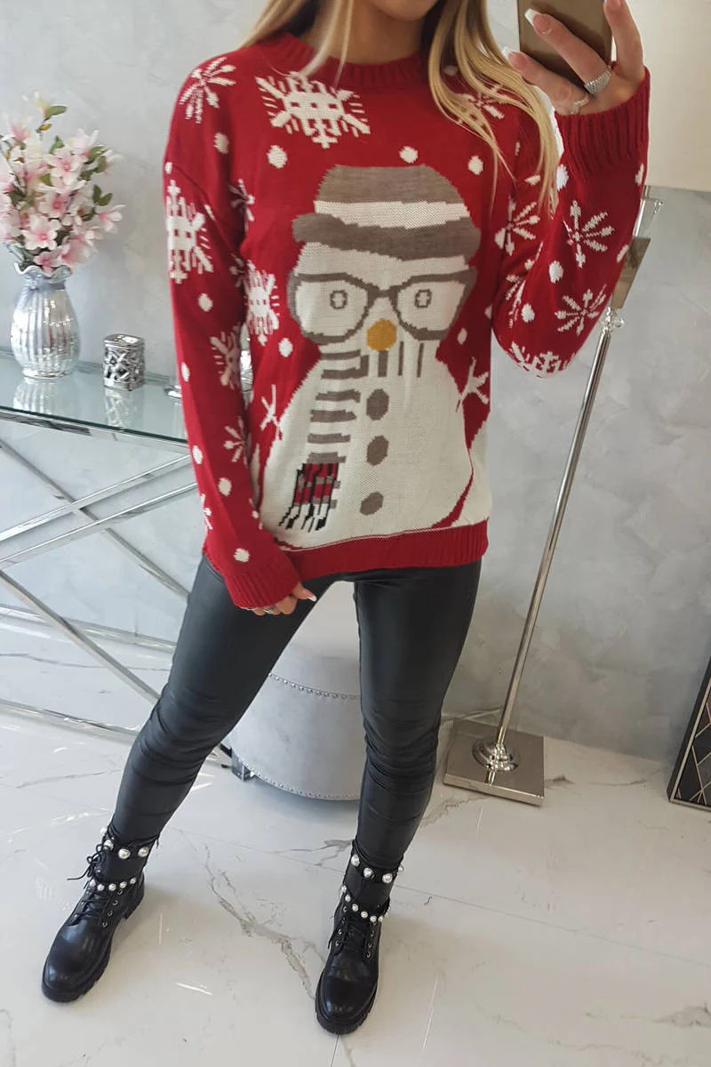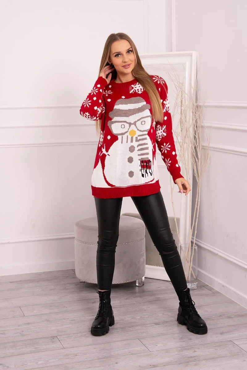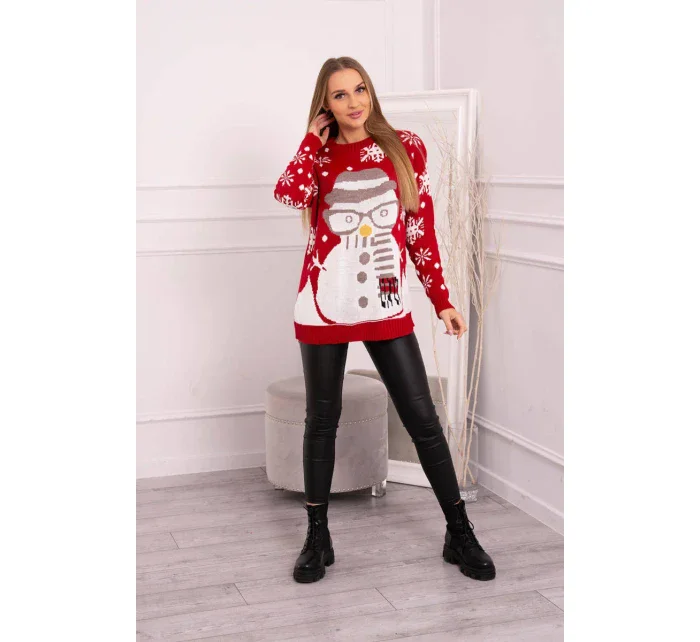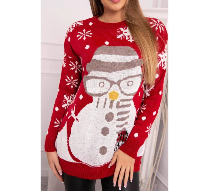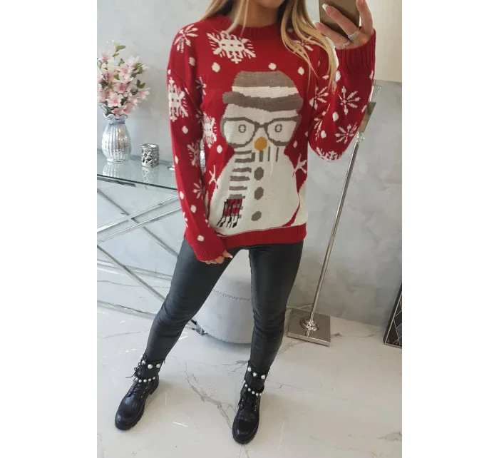 Vánoční svetr se sněhulákem červený
