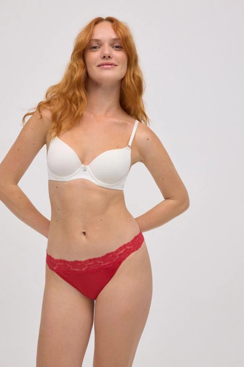 Czerwone stringi damskie to połączenie elegancji i komfortu. Wykonane z miękkiego, elastycznego materiału, idealnie dopasowują się do sylwetki, podkreślając kobiece kształty. Główną ozdobą modelu jest delikatna koronka w pasie, która dodaje bieliźnie zmysłowego i stylowego charakteru. Stringi zapewniają dyskrecję pod ubraniem, nie odznaczając się na ciele, dzięki czemu są doskonałym wyborem do dopasowanych kreacji. Intensywny czerwony kolor sprawia, że to idealna propozycja zarówno na co dzień, jak i na wyjątkowe okazje.