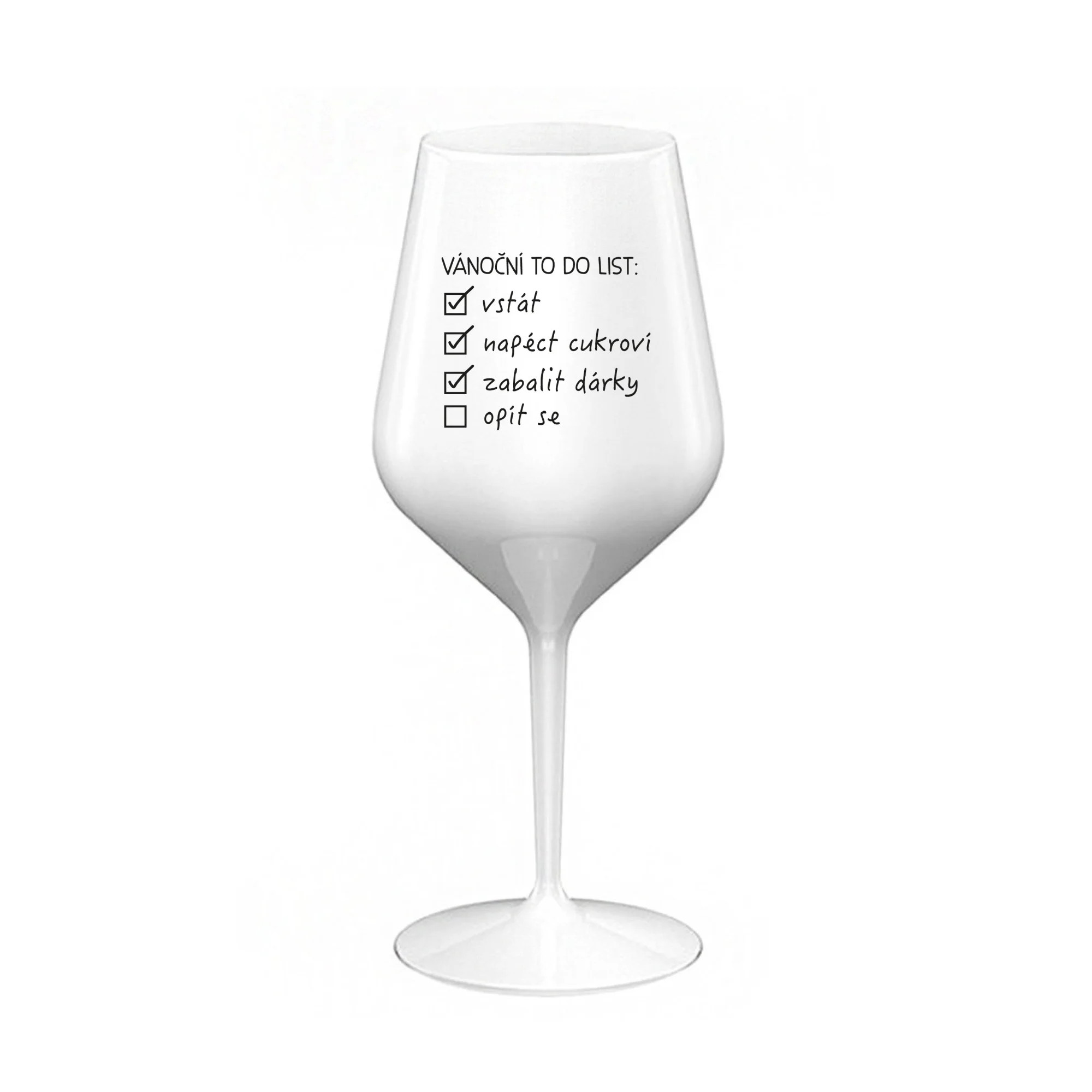VÁNOČNÍ TODO LIST - bílá nerozbitná sklenice na víno 470 ml
