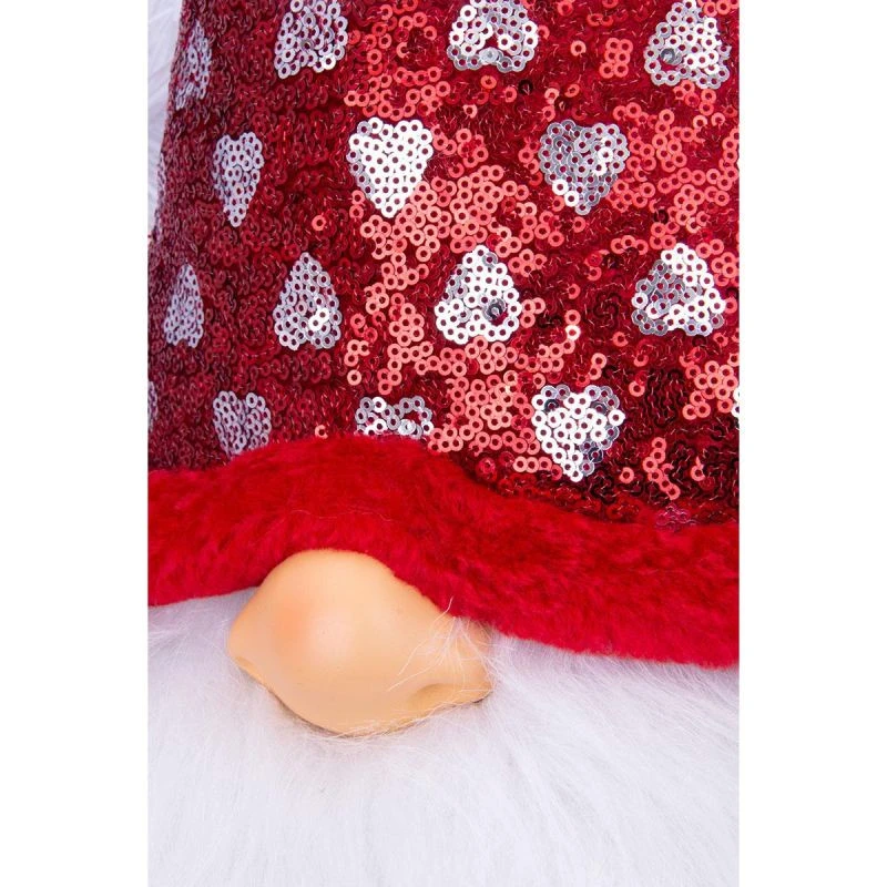 - velký svítící červený flitrový klobouk se srdíčky dodává trpaslíkovi i místnosti veselý barevný ráz