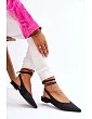 Módní baleríny s otevřenou patou a špičatou špičkou jsou vyrobeny z textilního materiálu. Svršek byl navíc zdoben tryskami. Měkká stélka z ekokůže zajistí pohodlí při používání. Balerínky mají plochý podpatek a zavazování kolem lýtka. Skvělý model pro teplejší dny! Při výběru velikosti se řiďte tabulkou velikostí.