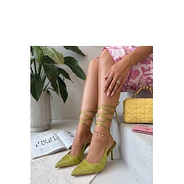 Elegantní podpatky se šněrováním jsou výjimečná nabídka pro ženy, které chtějí spojit klasiku s efektními detaily. Vyrobené z vysoce kvalitní ekologické kůže, prezentují se stylově a skvěle doplňují jak večerní, tak i více slavnostní stylizace. Model se vyznačuje šněrováním, které mu nejen dodává originální charakter, ale také umožňuje lepší přizpůsobení k noze. Další ozdoby z cirkonů jemně září, dodávají celku luxusní a ženský vzhled. Špičatý nos opticky zjemňuje nohu, zdůrazňující eleganci střihu. Vysoký podpatek o výšce 9 cm krásně prodlužuje nohy a modeluje postavu, zachovávaje přitom elegantní charakter obuvi. Vložka z ekologické kůže zvyšuje pohodlí nošení, díky čemuž se model osvědčí na výjimečné příležitosti, kdy se počítá styl a efektní vzhled.