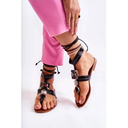 Přidání recenze k Vázané sandály žabky s krystaly černý Shendon