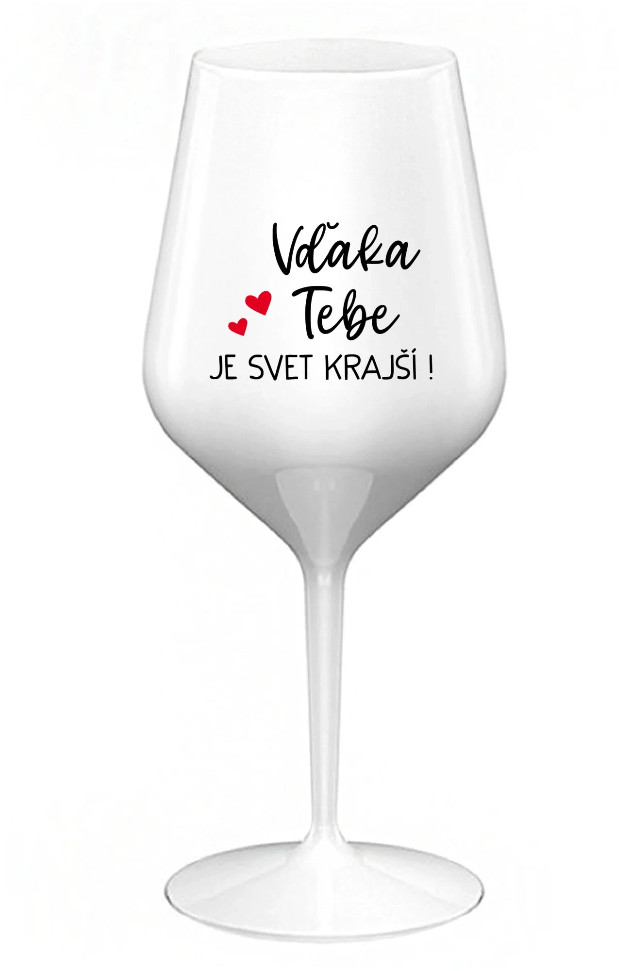 VĎAKA TEBE JE SVET KRAJŠÍ! - biely nerozbitný pohár na víno 470 ml