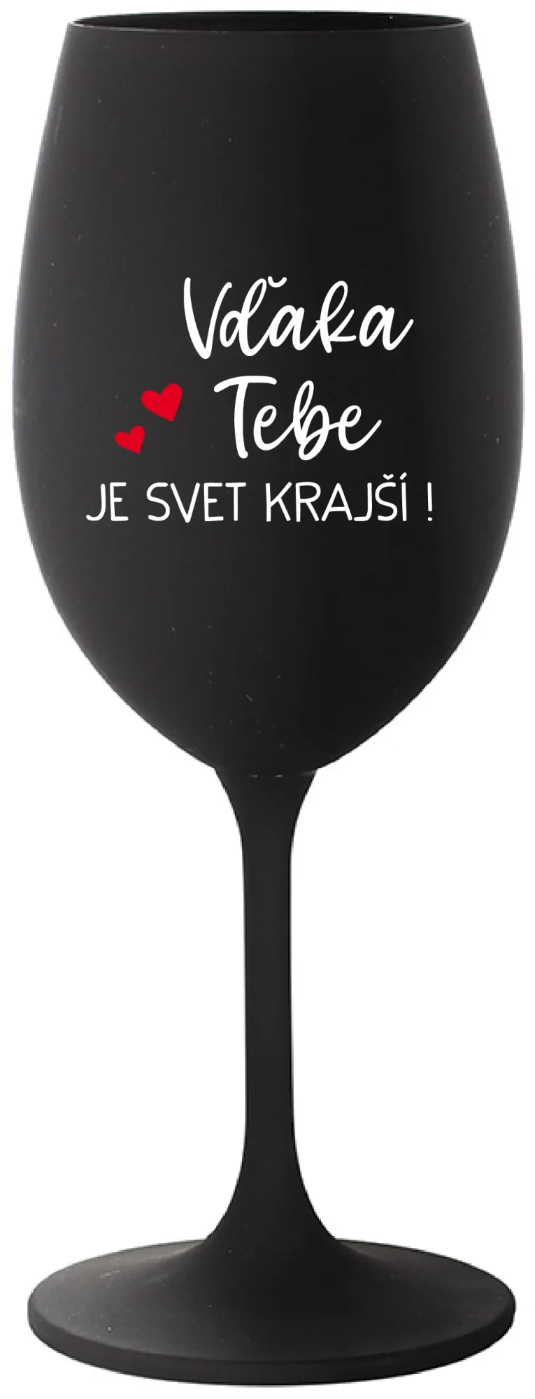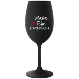 VĎAKA TEBE JE SVET KRAJŠÍ! - čierny pohár na víno 350 ml