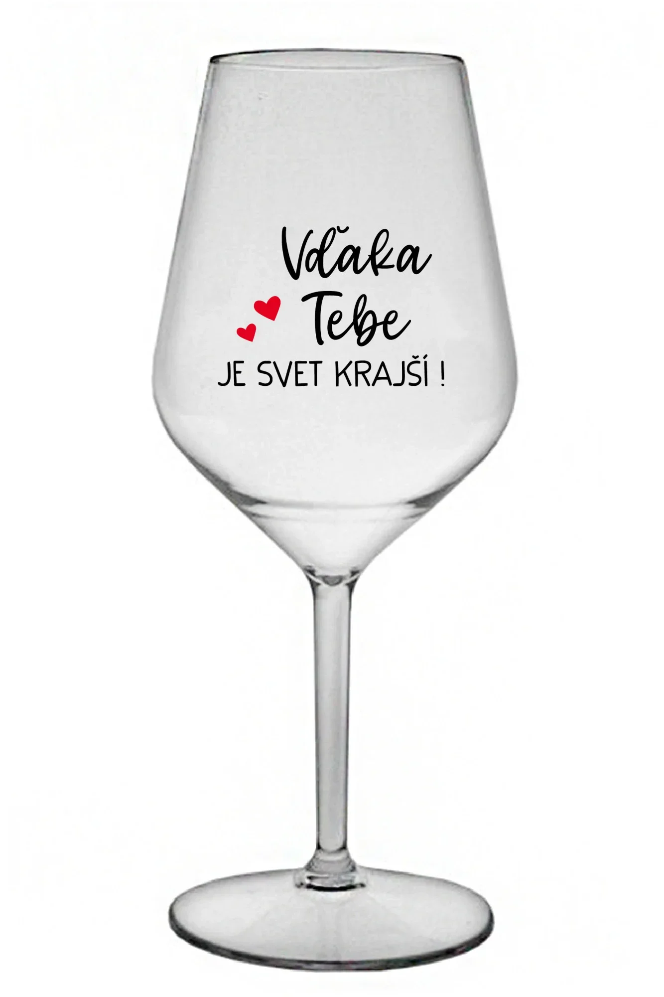 VĎAKA TEBE JE SVET KRAJŠÍ! - priehľadný nerozbitný pohár na víno 470 ml