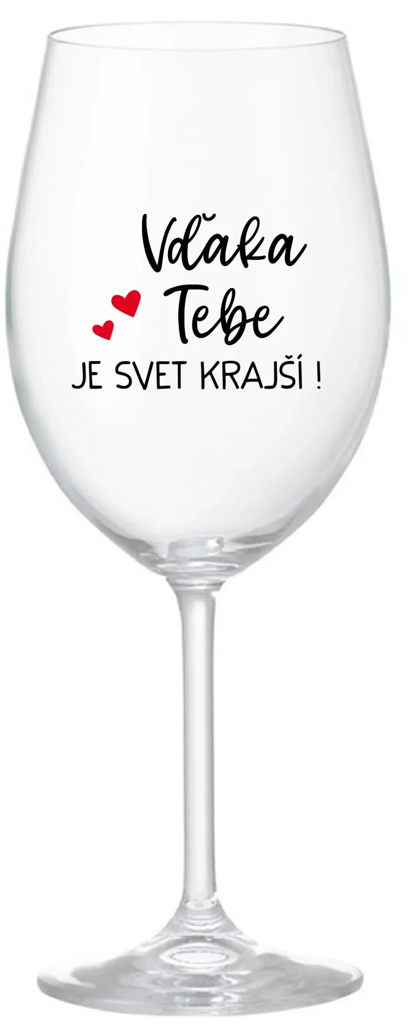 VĎAKA TEBE JE SVET KRAJŠÍ! - priehľadný pohár na víno 350 ml