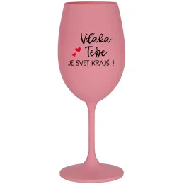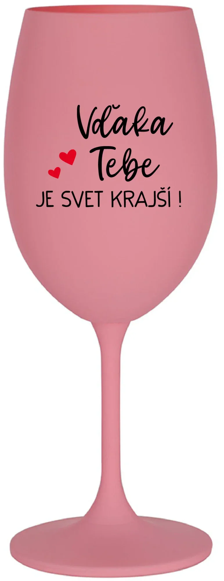 VĎAKA TEBE JE SVET KRAJŠÍ! - ružový pohár na víno 350 ml