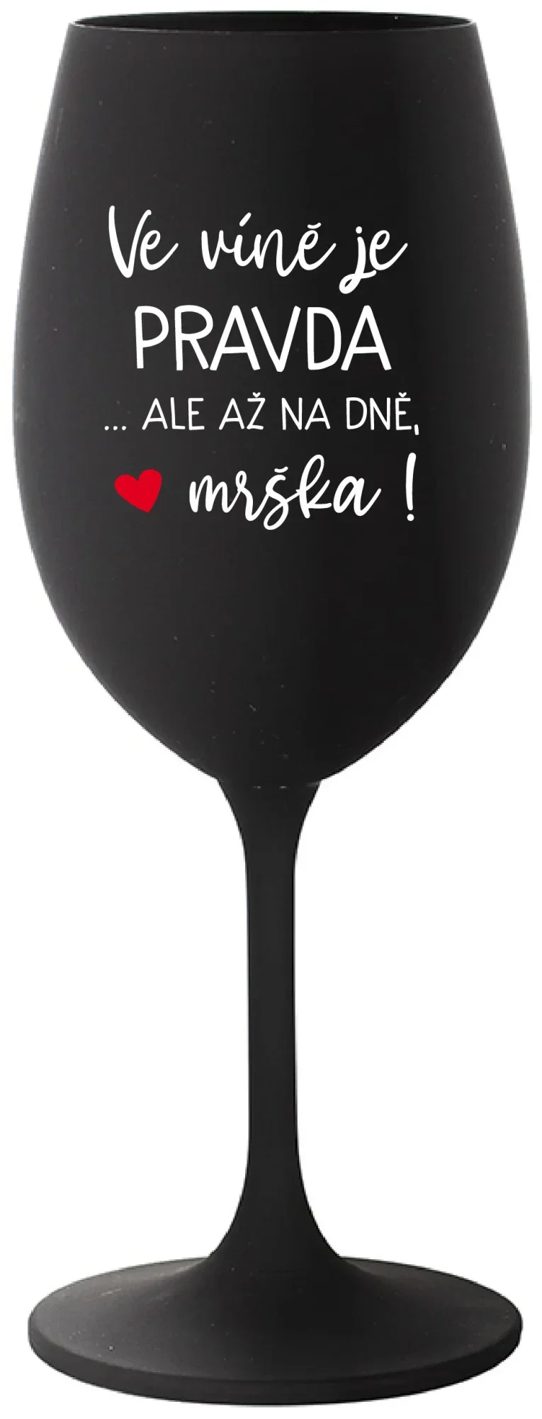VE VÍNĚ JE PRAVDA...ALE AŽ NA DNĚ, MRŠKA! - černá sklenice na víno 350 ml