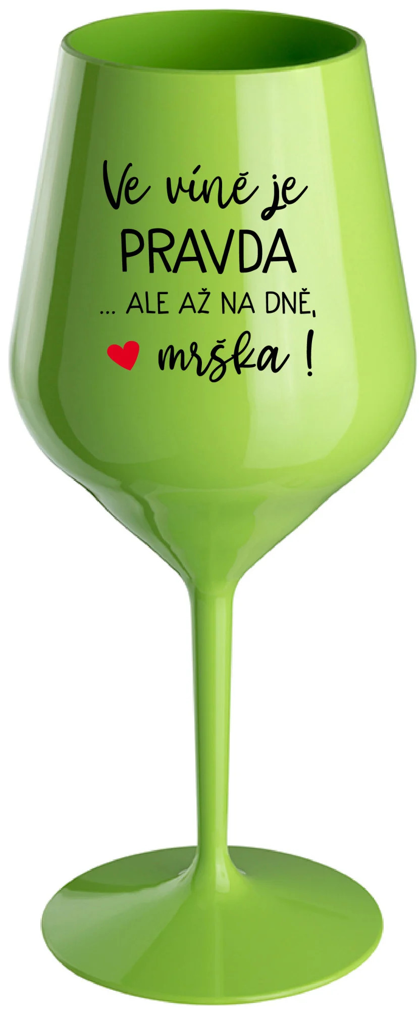 VE VÍNĚ JE PRAVDA...ALE AŽ NA DNĚ, MRŠKA! - zelená nerozbitná sklenice na víno 470 ml