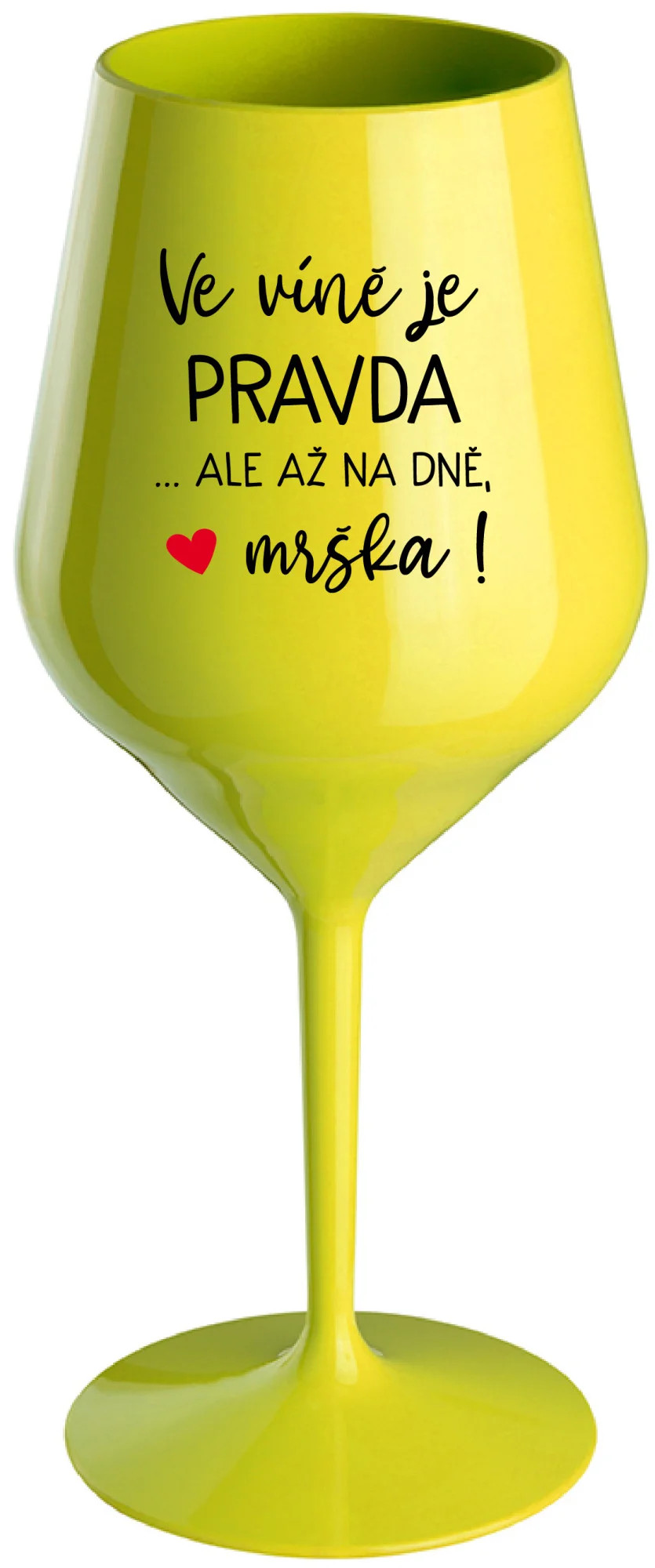 VE VÍNĚ JE PRAVDA...ALE AŽ NA DNĚ, MRŠKA! - žlutá nerozbitná sklenice na víno 470 ml