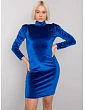Tmavě modré velurové šaty s rozparkem. Šaty s dlouhými rukávy a odhalenými rameny. Skvěle se hodí pro mnoho příležitostí.