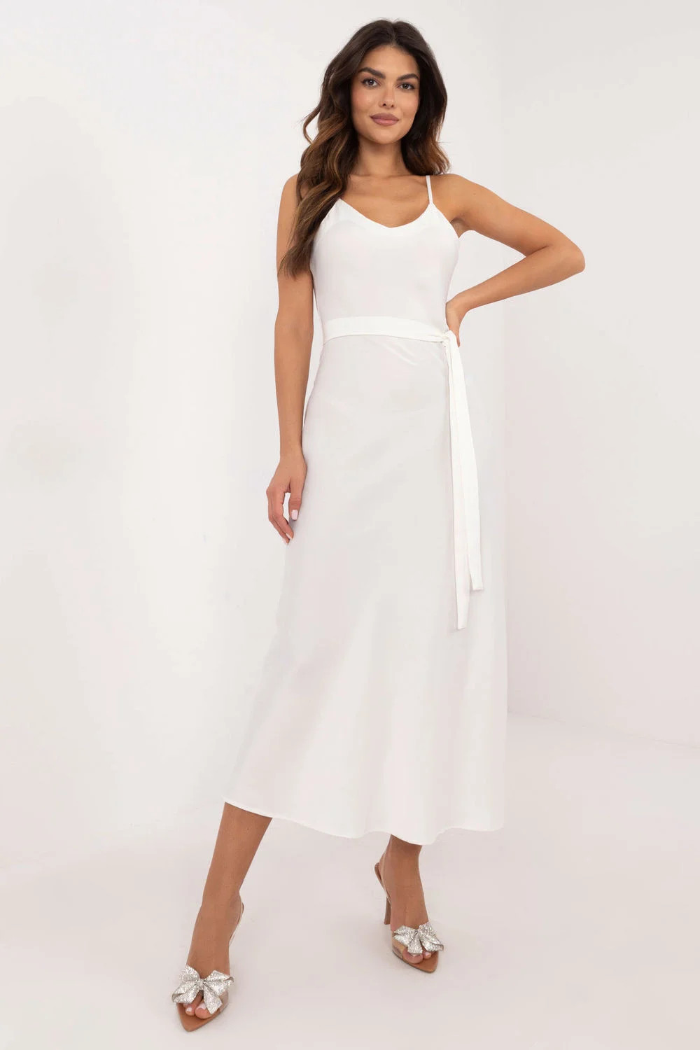Elegantní večerní šaty ve střihu mořské panny jsou výjimečnou volbou pro zvláštní příležitosti. Jsou vyrobeny z převažující kombinace viskózy a polyesteru, poskytují pohodlí a jemný lesk, což podtrhuje elegantní charakter této kreace. Střih šatů je rozšířený, což dodává lehkost a volnost a zároveň zdůrazňuje ženskou siluetu. Délka šatů sahá do poloviny lýtek, což jim dodává jemnou eleganci, ideální na formální schůzky nebo večerní večírky. Šaty jsou bez ramínek a mají hluboký výstřih do V, takže krásně odhalují dekolt a ramena. Šaty mají na boku praktické zapínání na zip, které usnadňuje jejich oblékání. Mezi další prvky patří podšívka pro větší pohodlí a pásek na zavazování v pase pro lepší přizpůsobení. Díky hladkému vzoru a sofistikované jednoduchosti jsou tyto šaty ideální volbou pro elegantní vycházky.