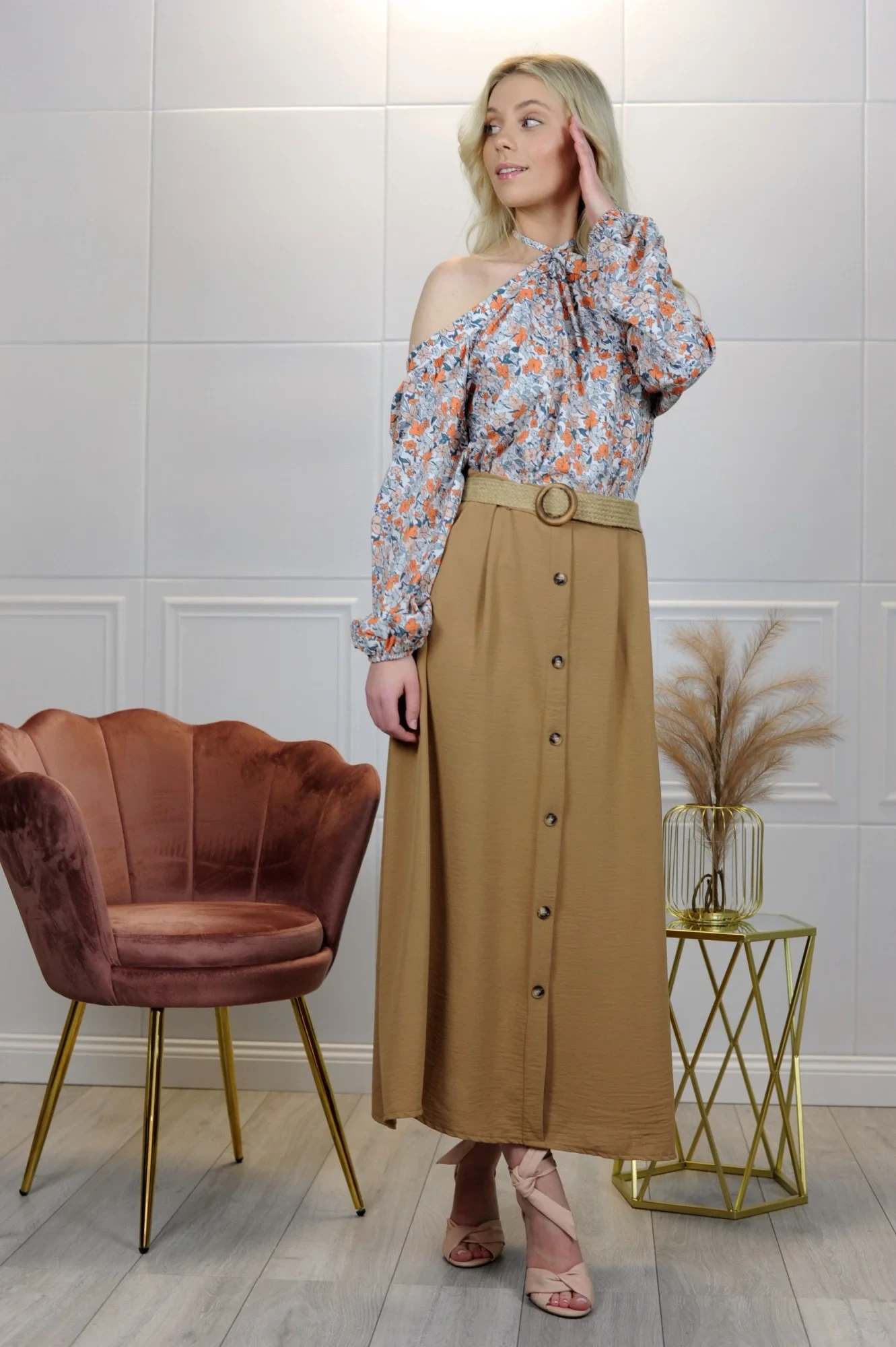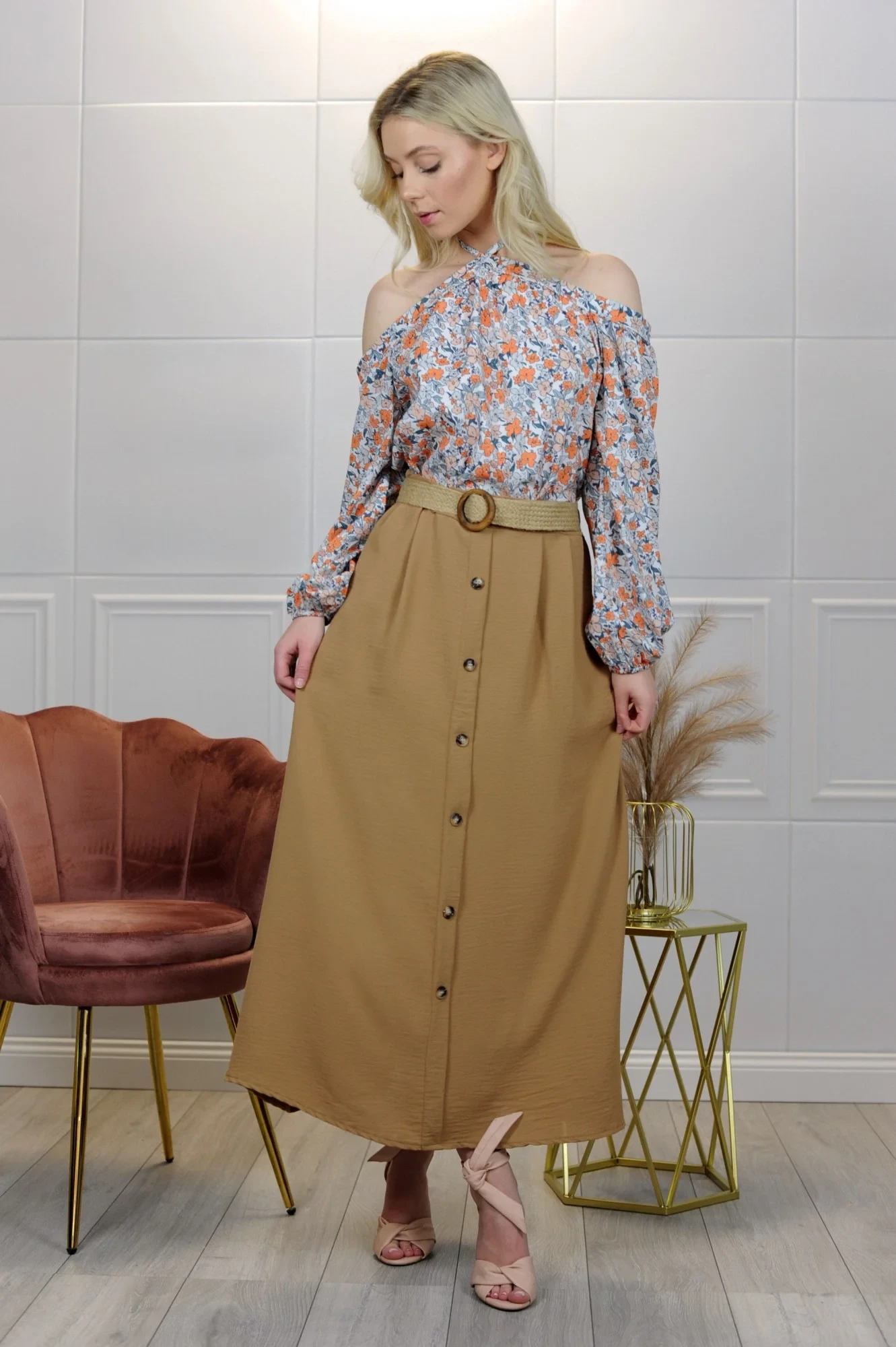 Dlouhá džínová sukně na knoflíky je klasický a všestranný kus oblečení, který kombinuje eleganci s ležérním stylem. Vyrobeno z vysoce kvalitní džínoviny, zajišťuje odolnost a pohodlí při nošení. Dlouhý střih jí dodává elegantní charakter a knoflíky vpředu jsou módním akcentem, který usnadňuje oblékání a svlékání sukně. Tato sukně je ideální pro různé příležitosti, od každodenního vzhledu až po formálnější příležitosti, a dokonale se hodí k topům, košilím a svetrům a vytváří elegantní a pohodlné outfity. Dostupné velikosti XS, S, M, L.