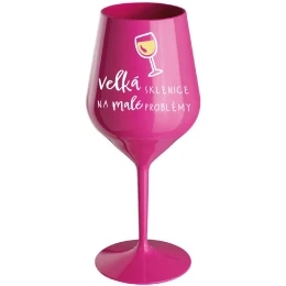 VELKÁ SKLENICE NA MALÉ PROBLÉMY - růžová nerozbitná sklenice na víno 470 ml