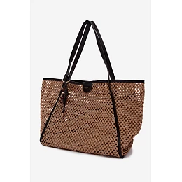 Velká světle hnědá pletená taška typu shopper s přívěskem Mella