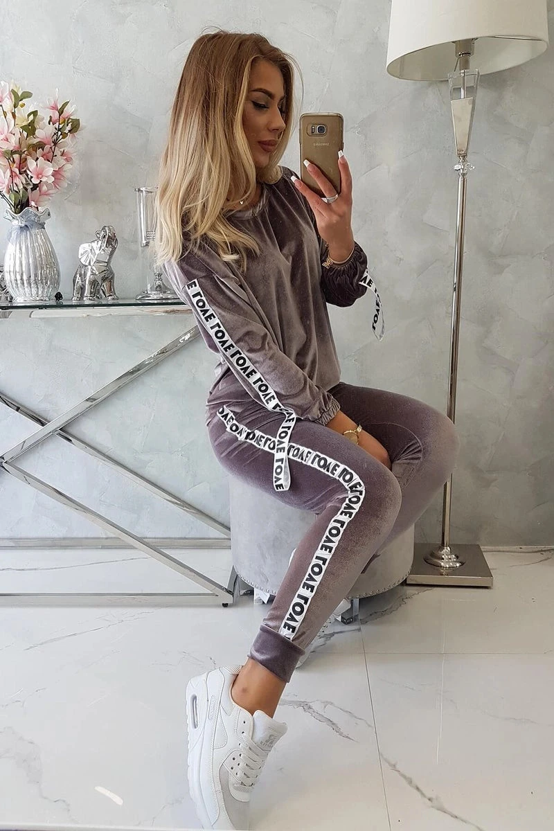 Představujeme vám sadu mikiny a kalhot. Sada z veluru. Mikina má stuhy s nápisem Love. Kalhoty s kapsami a zavazováním v pase. Velmi módní a stylová sada. Sada je vyrobena z vysoce kvalitního materiálu. Velikost je univerzální a vyhovuje dámám velikosti S, M nebo L.