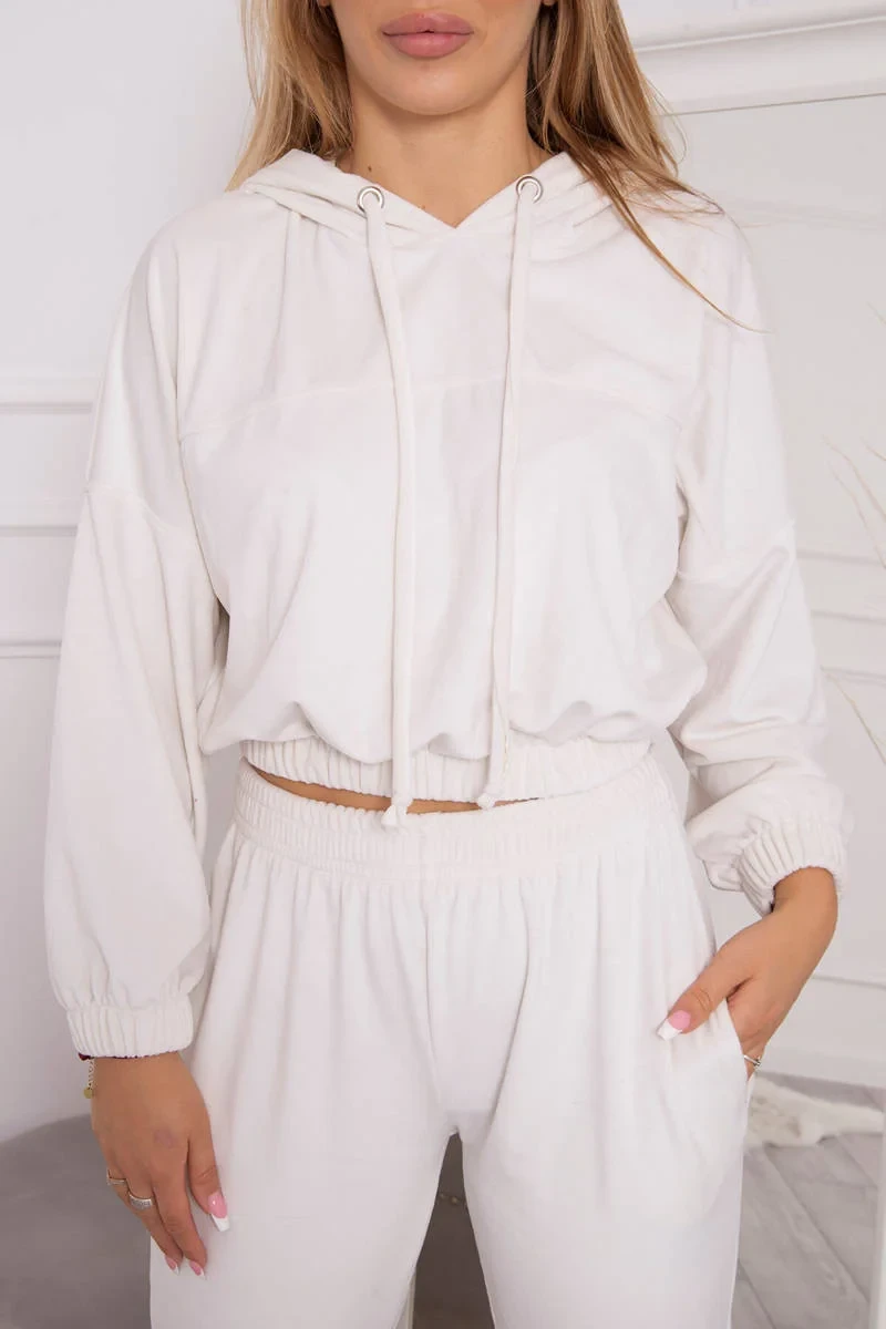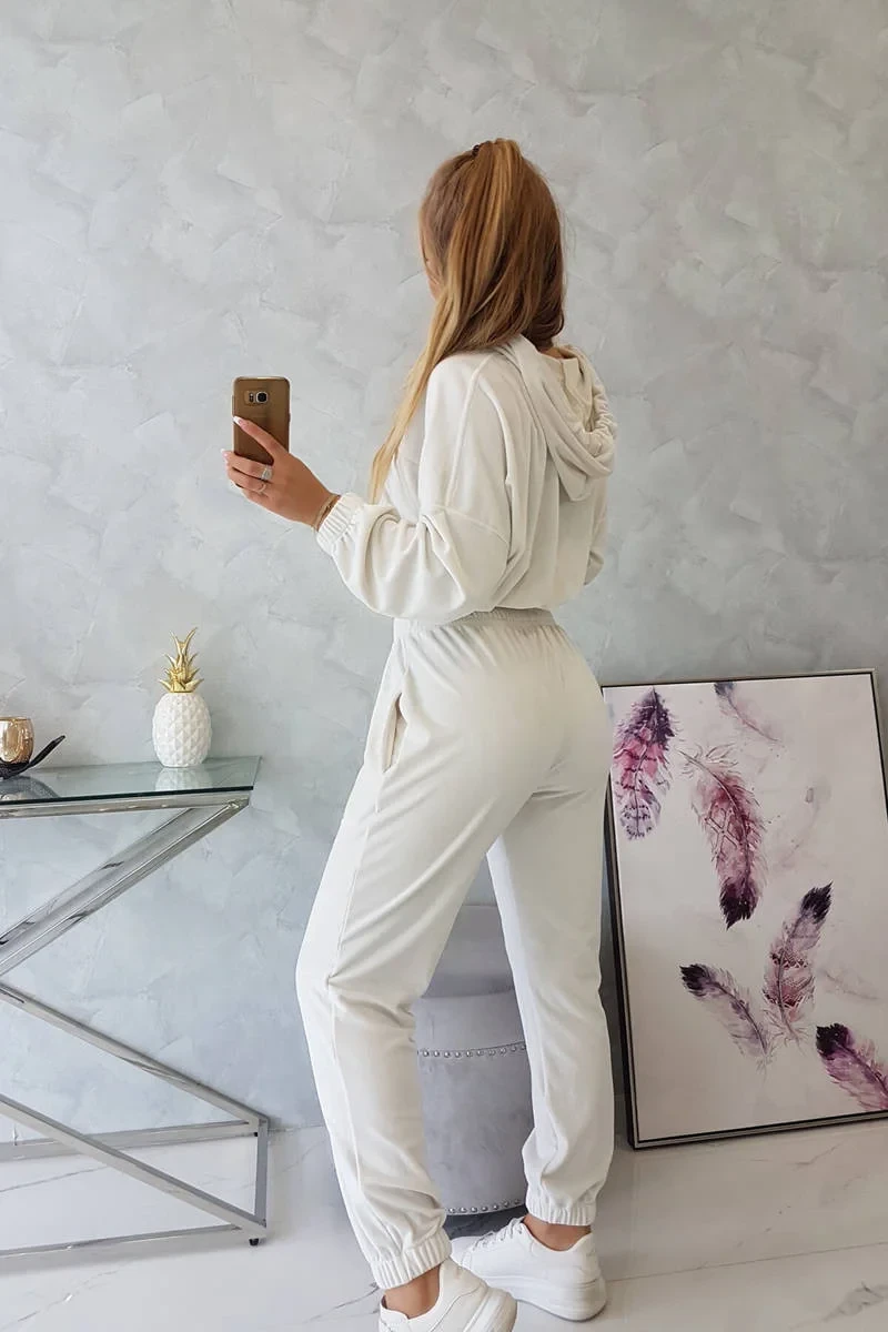 Velurová souprava s kapucí ecru