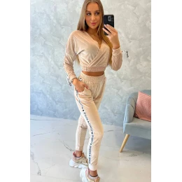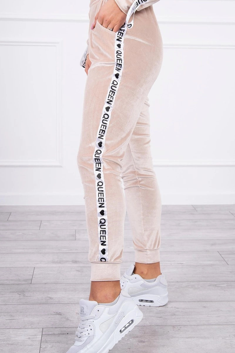 Velurová souprava s nápisem Queen beige