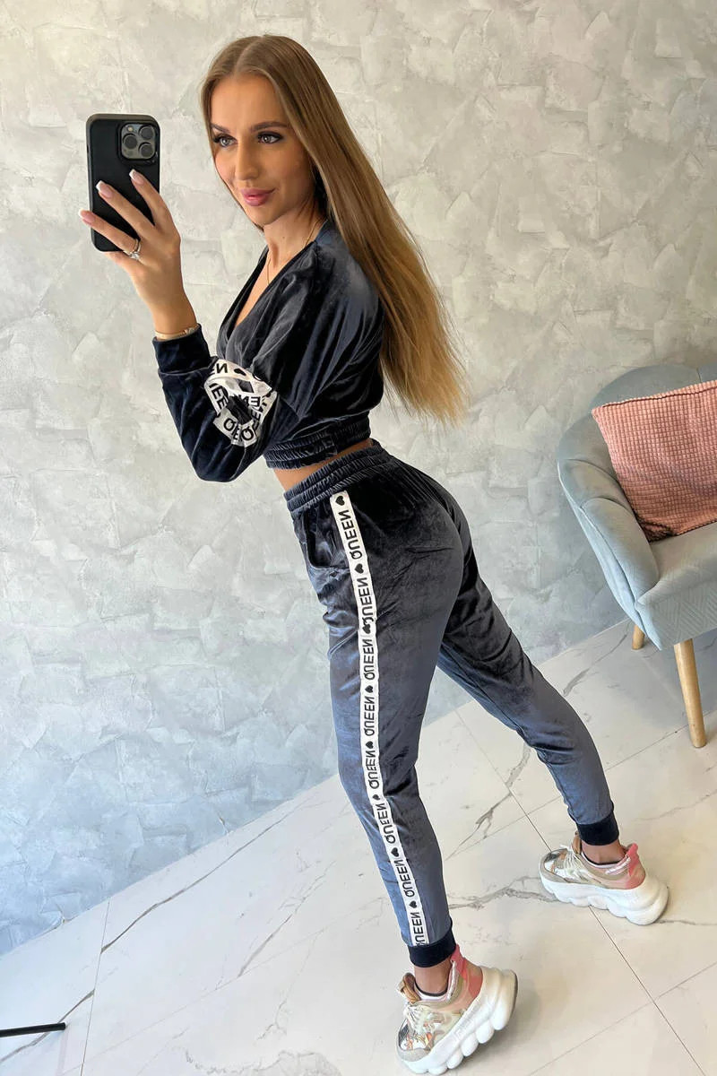 Přidání recenze k Velurová souprava s nápisem Queen graphite