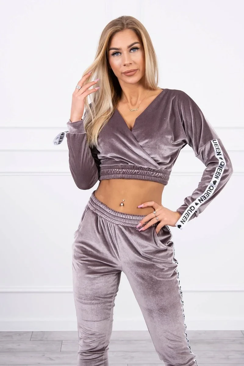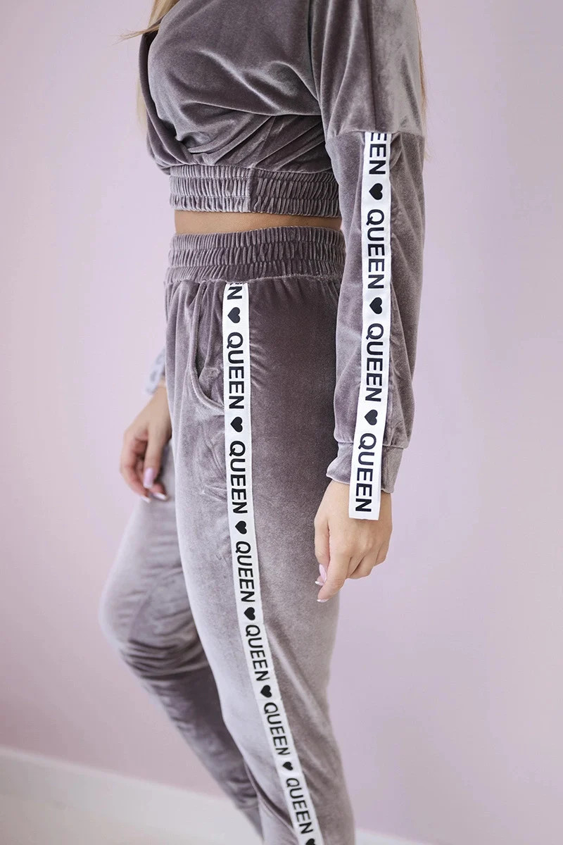 Přidání recenze k Velurová souprava s nápisem Queen grey