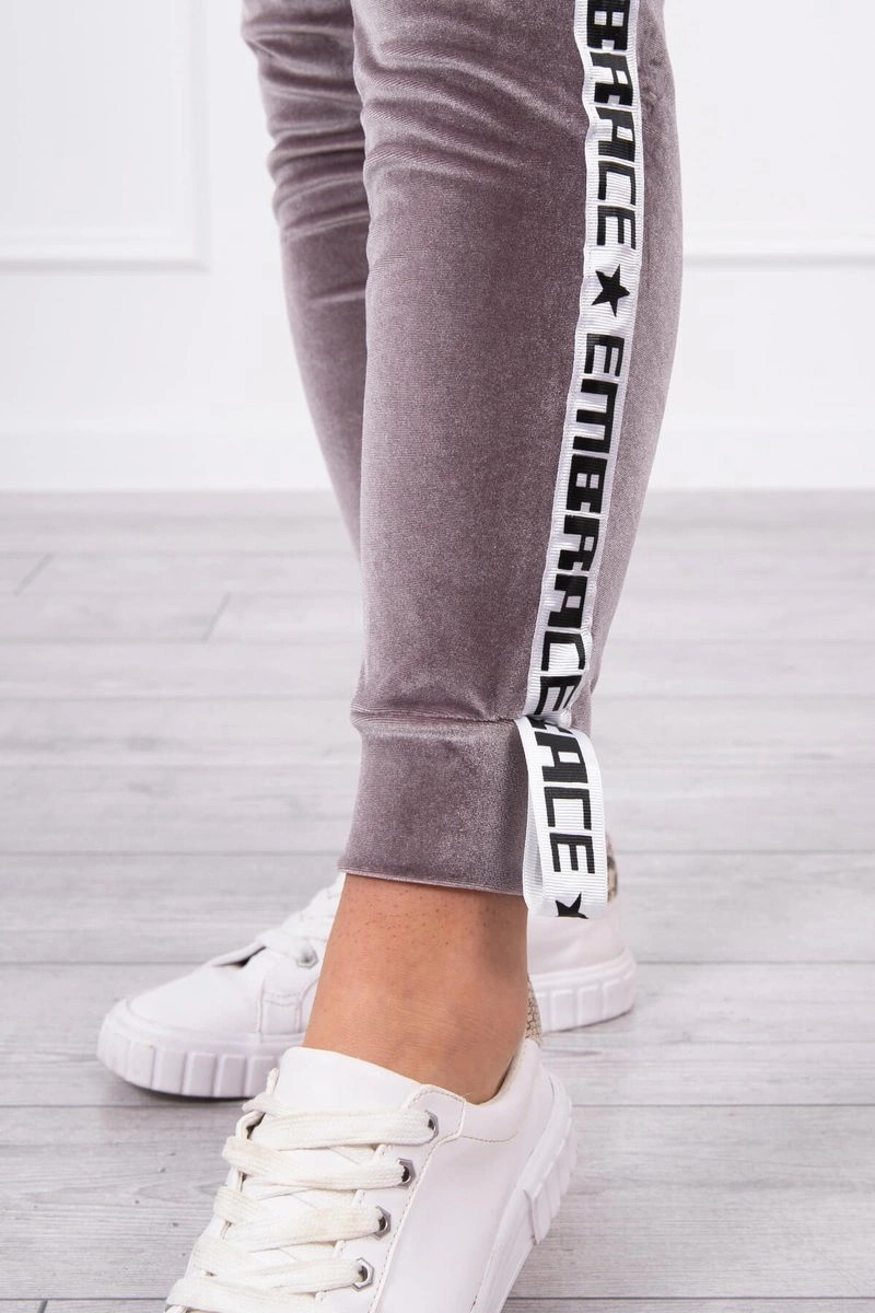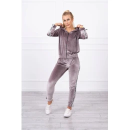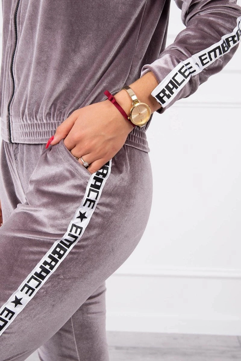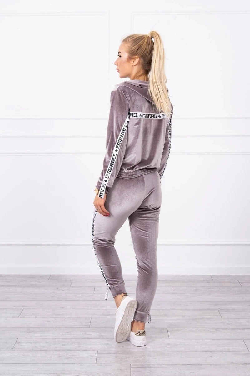 Velurová souprava s ozdobnými stuhami šedá