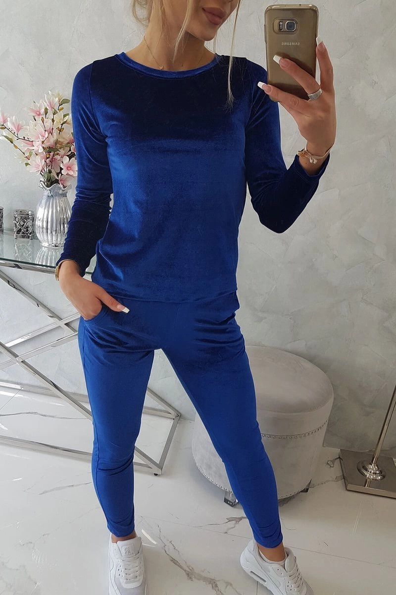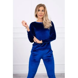 Velurová souprava s řasením na zadní straně chrpově modrá