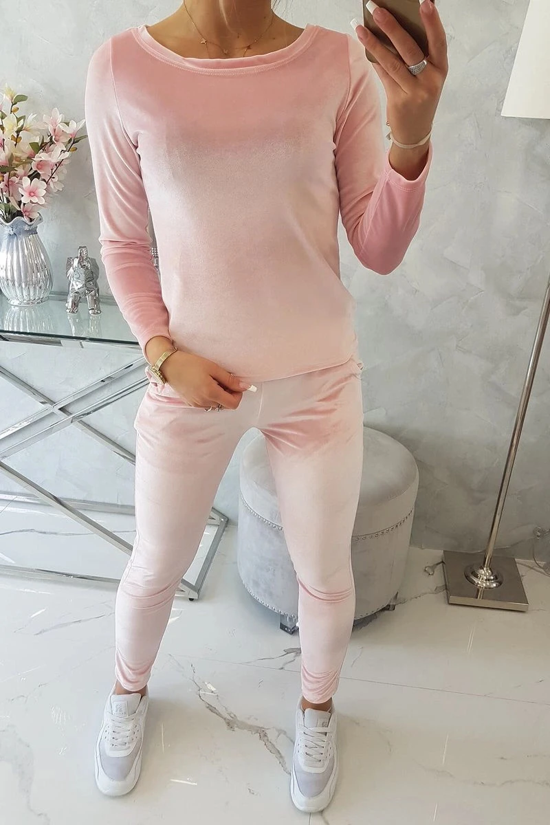 Velurová souprava se model 21753150 na zadní straně pudrově růžová - K-Fashion