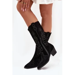 Velurové Dámské Cowboyské Kozáky Na Podpatku Černé Karira