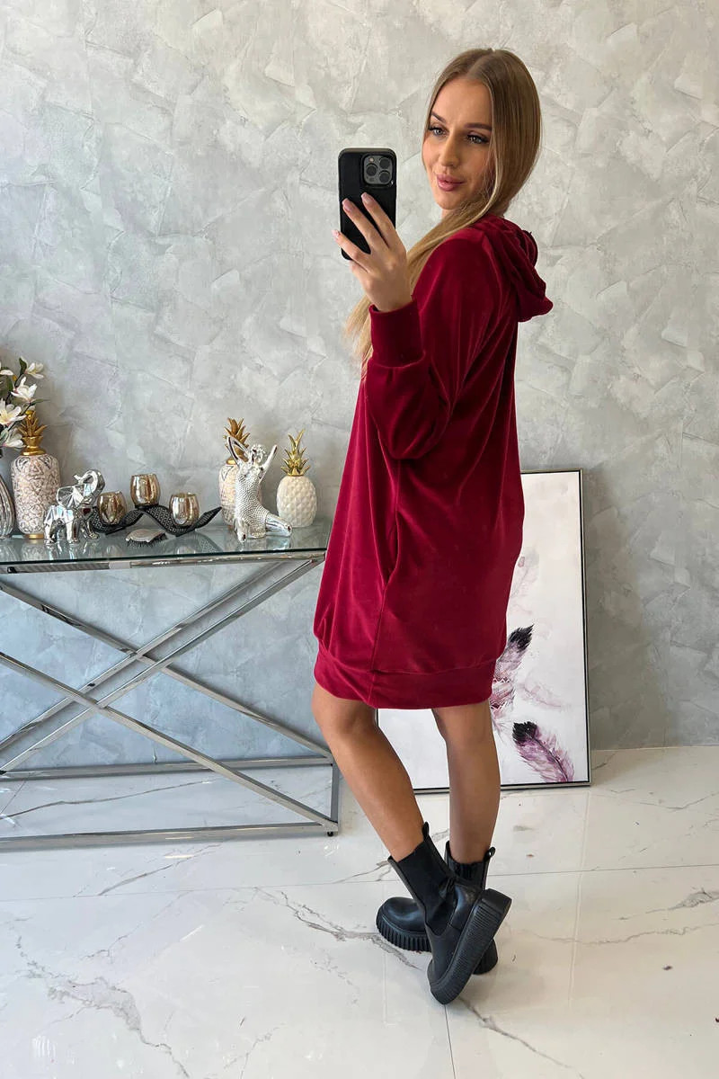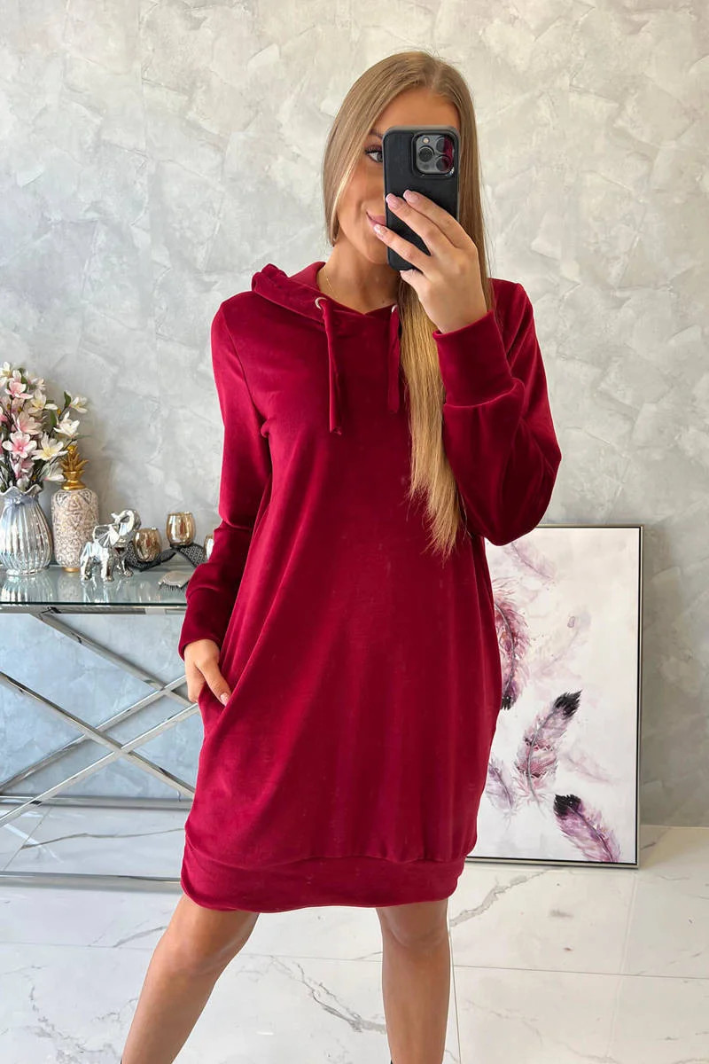 Představujeme vám velurové šaty. Šaty mají kapuci. Šaty jsou vyrobeny z vysoce kvalitního materiálu. Velikost je univerzální a vyhovuje dámám, které nosí velikost S, M nebo L.