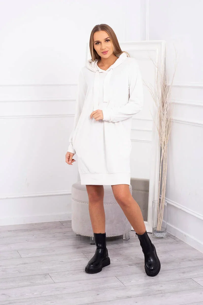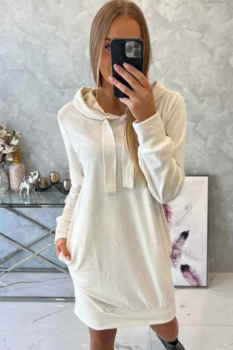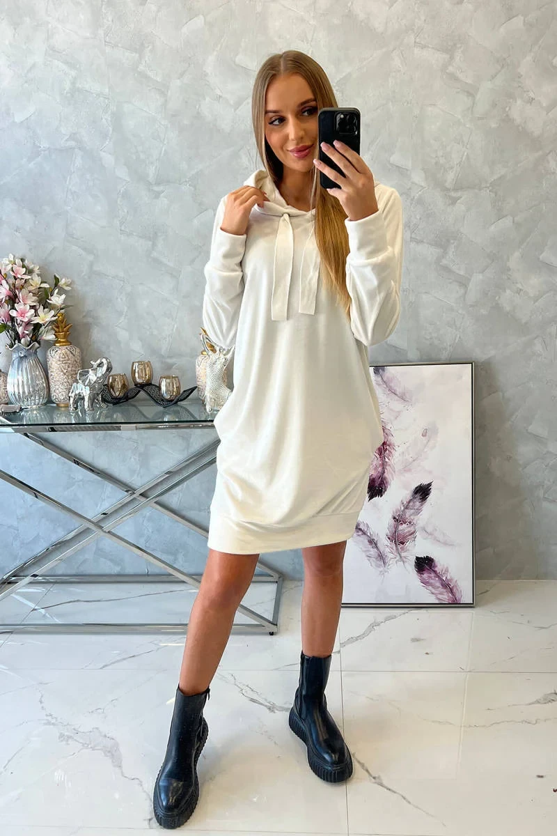 Velurové šaty s kapucí ecru