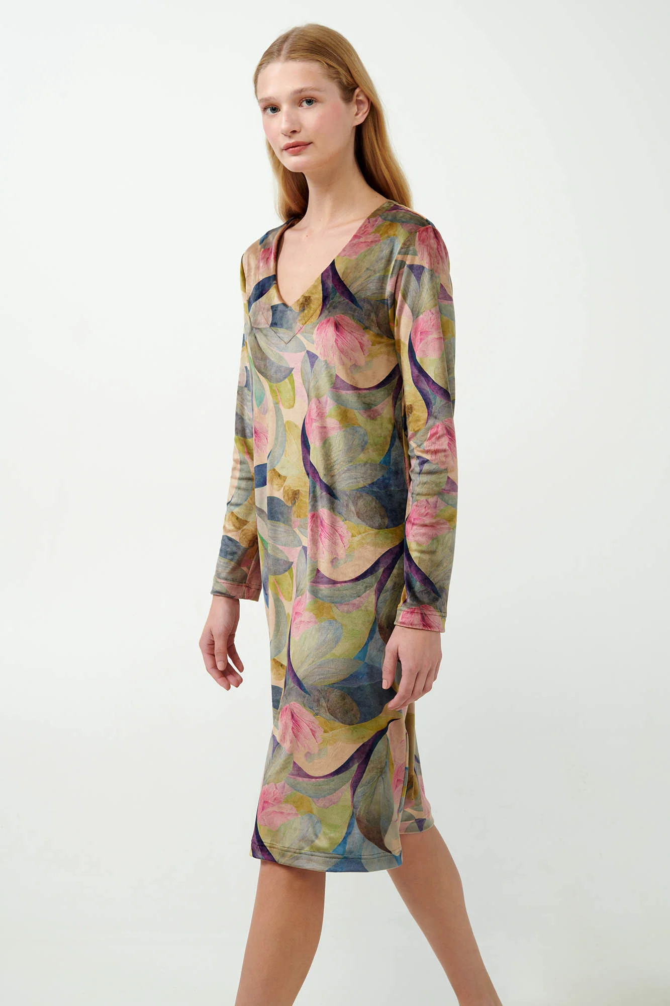Velurové šaty s květinovým potiskem model 20516032 - Vamp