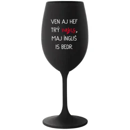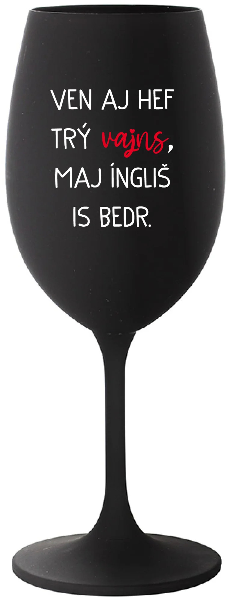 VEN AJ HEF TRÝ VAJNS, MAJ ÍNGLIŠ IS BEDR. - černá sklenice na víno 350 ml