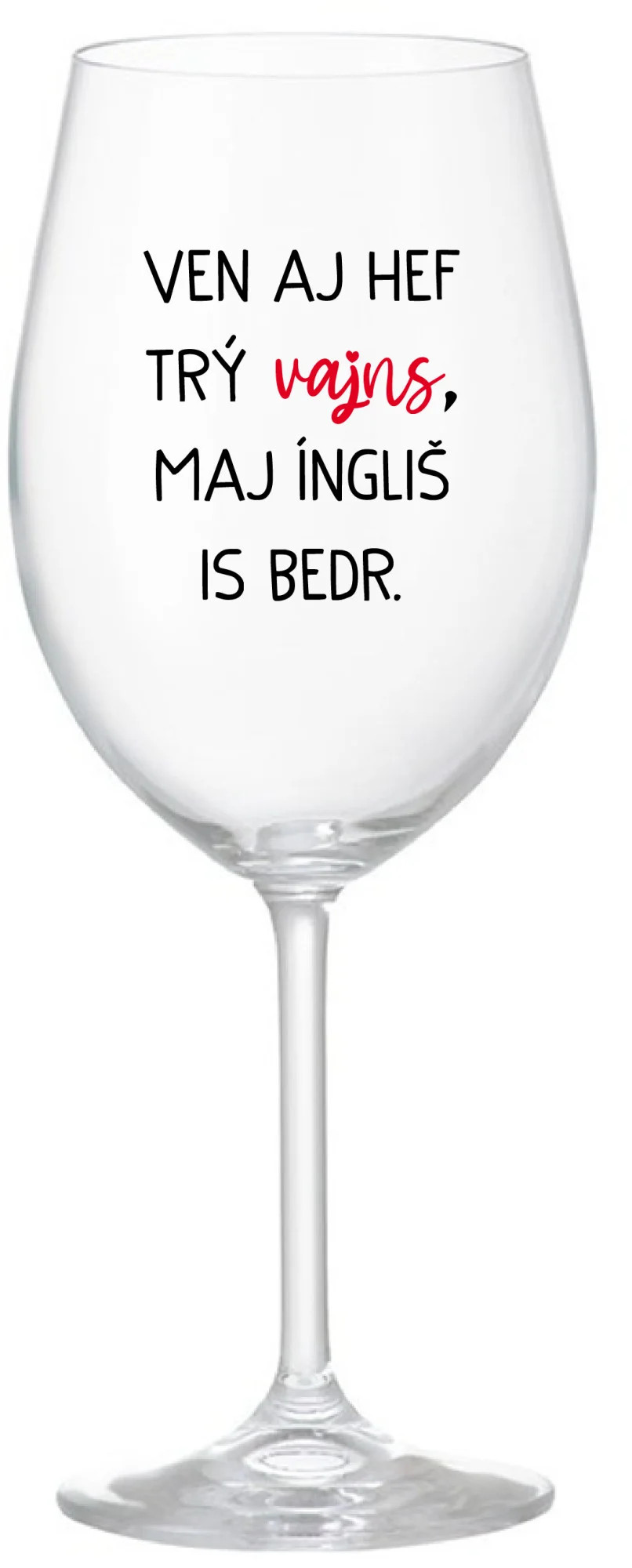 VEN AJ HEF TRÝ VAJNS, MAJ ÍNGLIŠ IS BEDR. - čirá sklenice na víno 350 ml