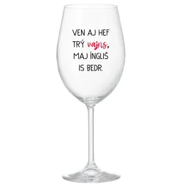 VEN AJ HEF TRÝ VAJNS, MAJ ÍNGLIŠ IS BEDR. - priehľadný pohár na víno 350 ml