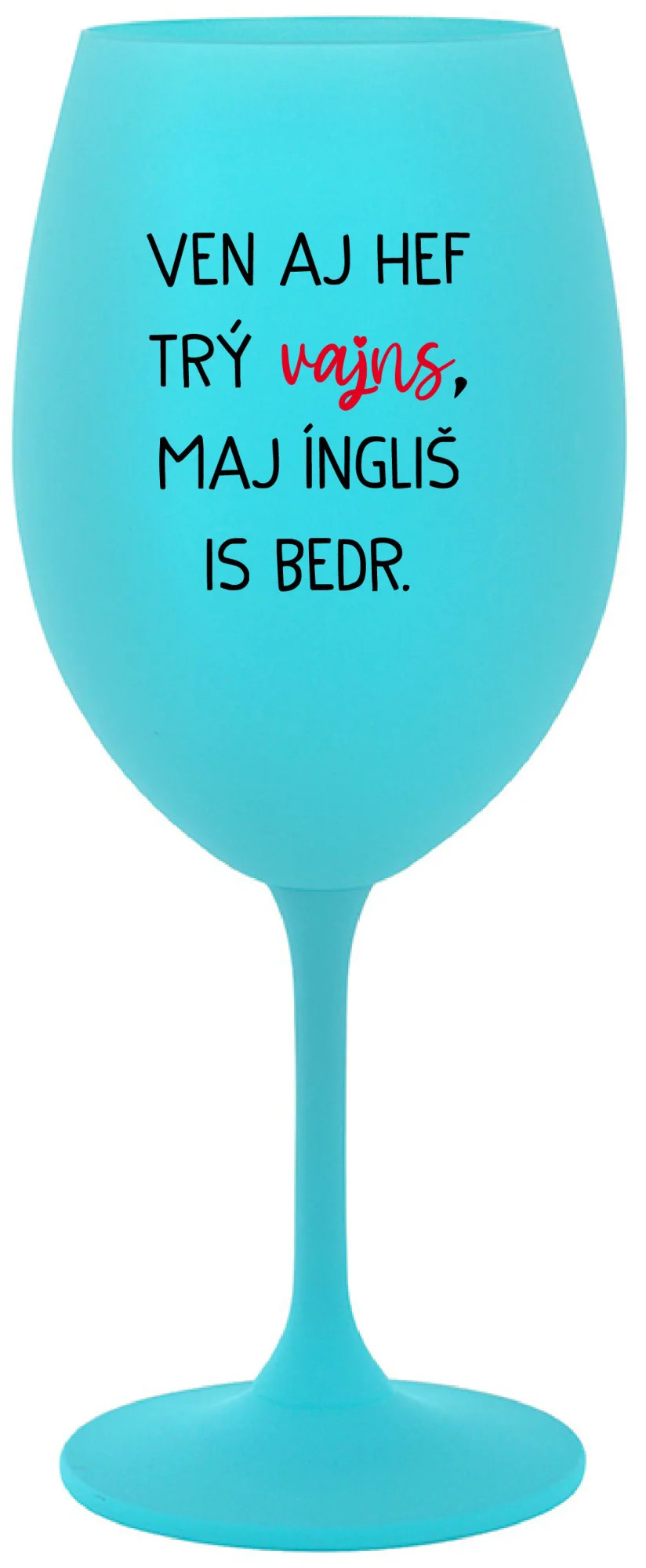 VEN AJ HEF TRÝ VAJNS, MAJ ÍNGLIŠ IS BEDR. - tyrkysová sklenice na víno 350 ml