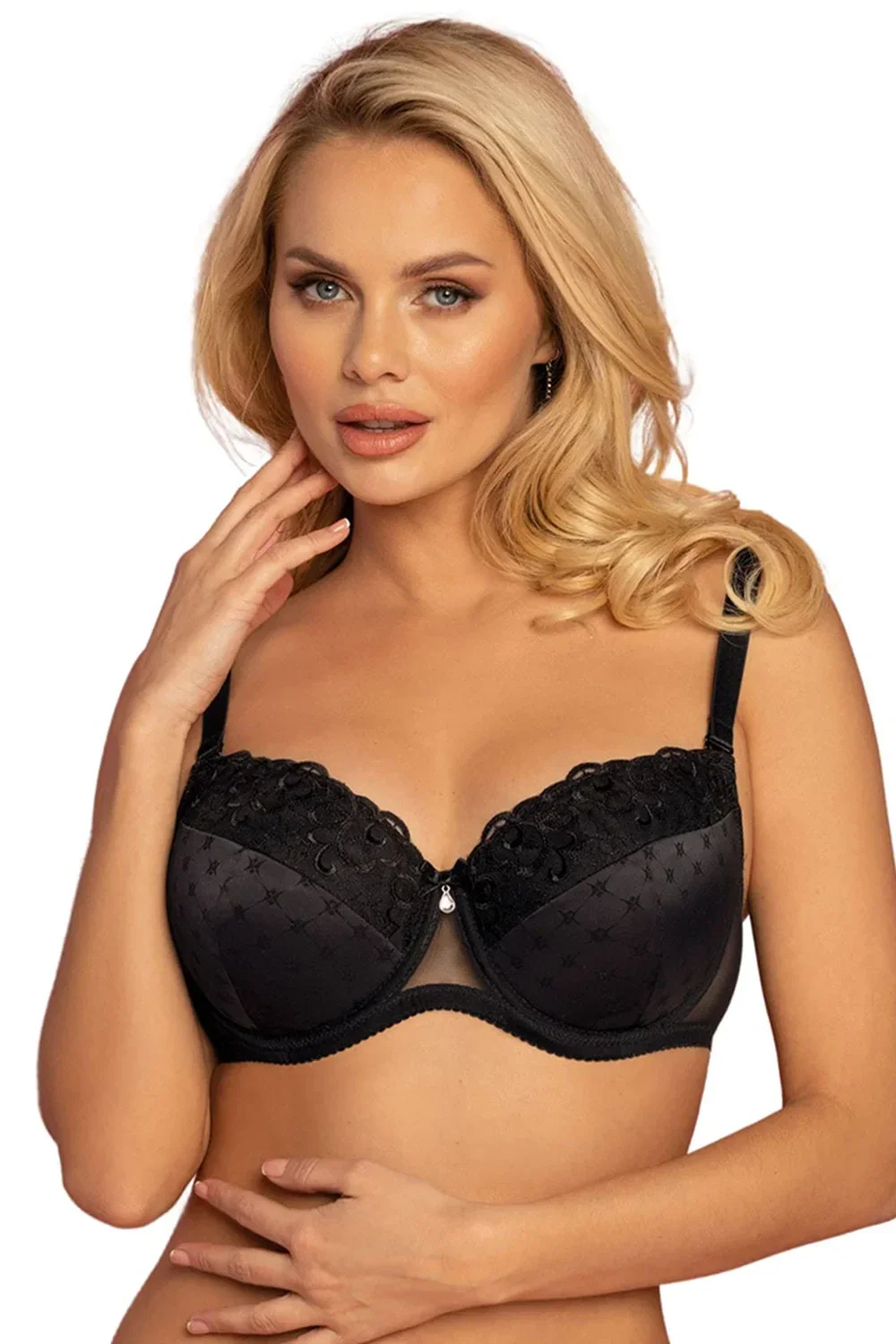 Podprsenka značky Vena, model VB-442, s drátky, které podporují a tvarují prsa, s nastavitelnými a odnímatelnými ramínky, se zapínáním na háčky na zádech, dvěma řadami svislých háčků a čtyřmi úrovněmi vodorovných háčků. 75% polyamid, 15% elastan, 5% polyester, 5% bavlna, ženská.Parametry