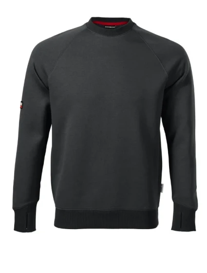 rovný střih s bočními švy vnitřní část průkrčníku začištěna kontrastní páskou raglánové rukávy s dvojitým prošitím dolní lem, manžety a průkrčník z žebrového úpletu 2:2 s 5 % elastanu manžety s otvorem pro palec kontrastní prvky