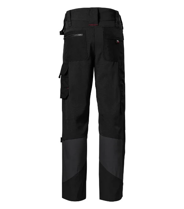 povrchová úprava odpuzující nečistotu tvarovaný elastický pasový límec klín v rozkroku s 6 % elastanu 10 multifunkčních kapes kapsy pro vložení chráničů kolen odvětrávání v zadní části kolen plastové "D" poutko poutko na kladivo vysoce odolný materiál CORDURA® v barvě 01 kontrastní prvky možnost prodloužení délky nohavic certifikace dle normy EN ISO 13688, EN 14404 + A1 (typ 2, úroveň 1) v kombinaci s chrániči kolen A99