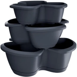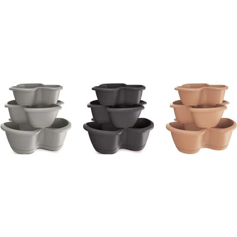 - Sada se skládá ze 4 částí: 3 květináče, 1 podstavec