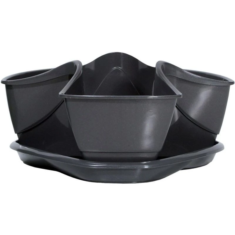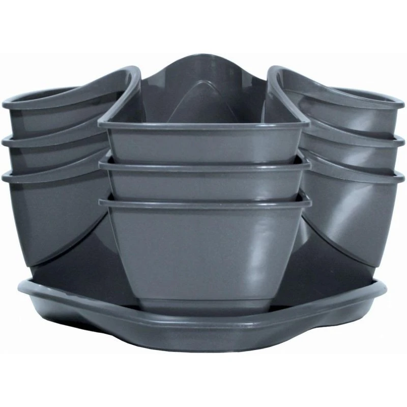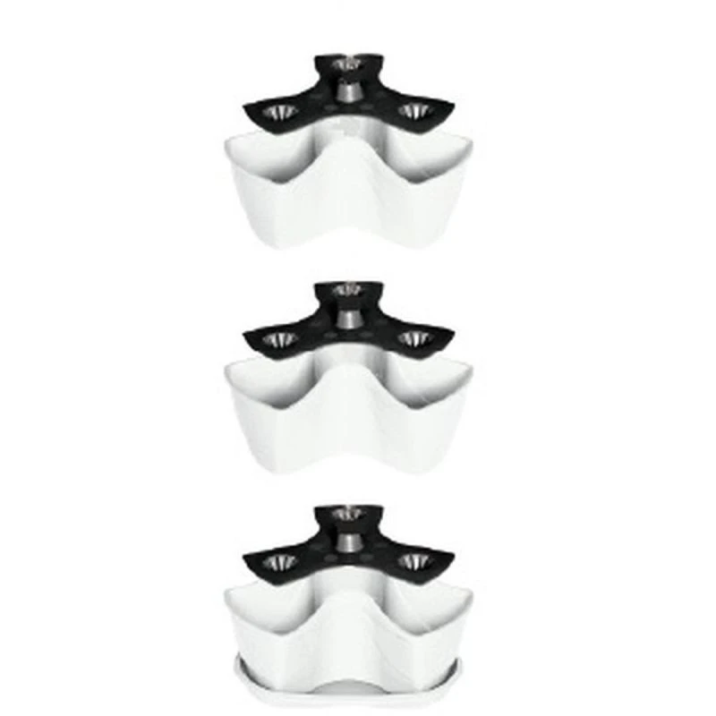 - Sada se skládá ze 7 dílů: 3 květináčů, 1 podstavce, 3 odtokových vložek