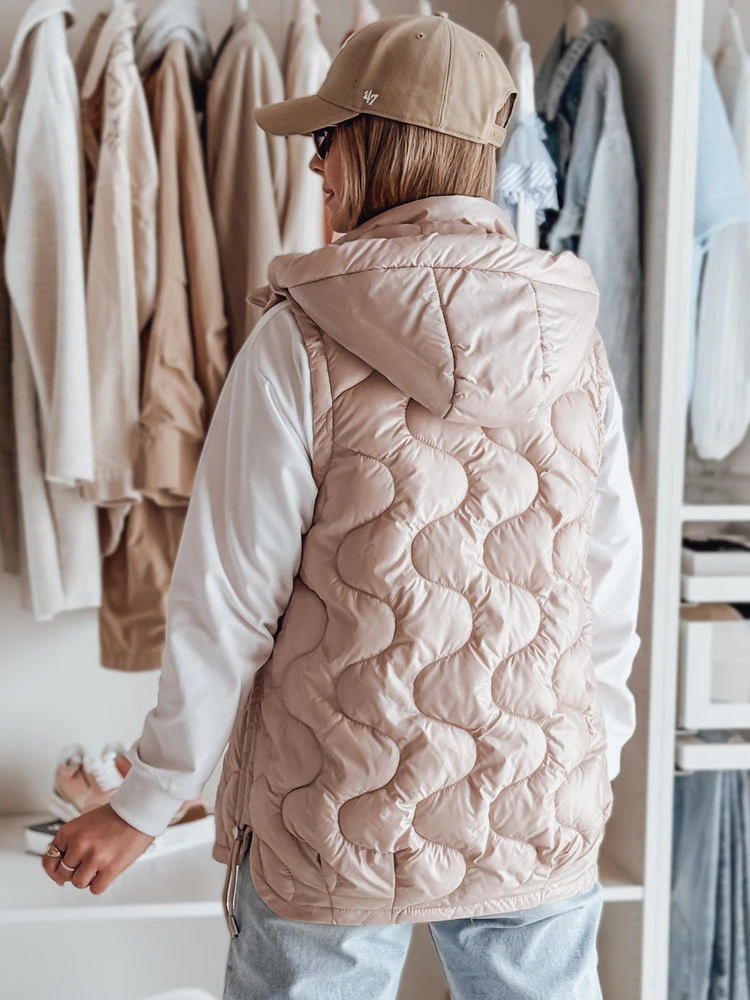 Stylová přechodová vesta s jedinečným prošíváním, které jí dodává charakter. Vycpávka poskytuje lehký tepelný komfort a nastavitelné boky umožňují přizpůsobení střihu. Model s odnímatelnou kapucí a ozdobnými kapsami na drobnosti. Ideální pro vrstvení v přechodném období.