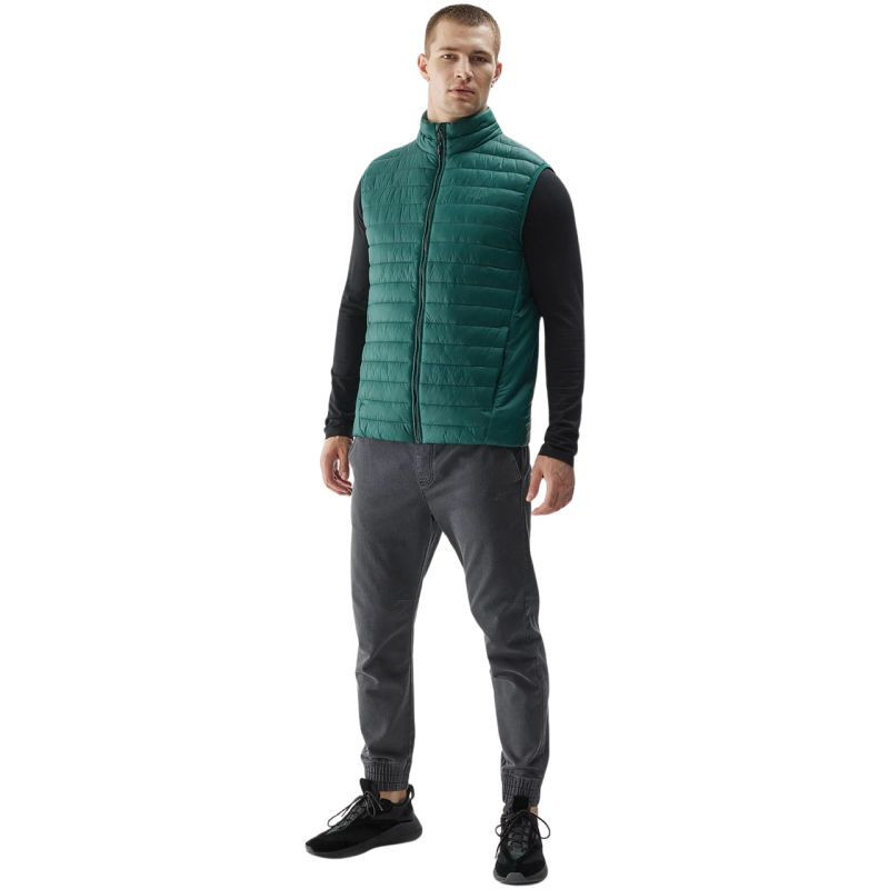 Pánská vesta 4F M062 zelená 4FAW23TVESM062 41S Pánská vesta bez rukávů 4F se bude dobře hodit na každodenní nošení. Bez podšívky. Kapsy na zip po stranách. Pohodlný límec pro ochranu proti větru. Vnitřní guma ve spodní části. Otvory na ramenou jsou zakončeny elastickým lemováním. Hydrofobní impregnace tkaniny snižuje absorpci vnější vlhkosti. Hlavní zip s vnitřní větruodolnou légou zakončenou ochrannou klopou pod bradou. Syntetická péřová výplň zajistí optimální tepelný komfort při používání.technické údaje:- hlavní materiál: 100% polyester- hlavní materiál: 100% extra- výplň: 100% polyester.EAN čárové kódy zboží jsou:
