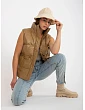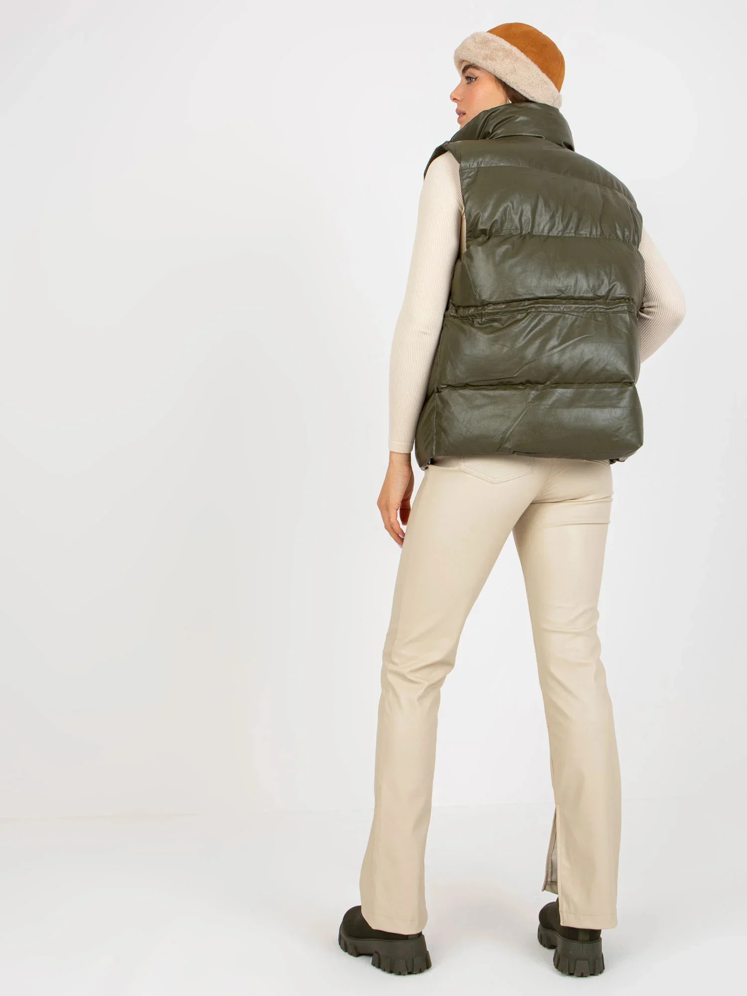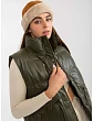 Khaki péřová vesta z ekokůže s prošíváním .